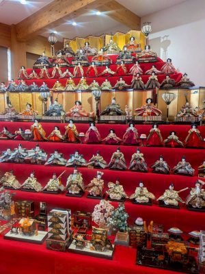 ☆見事な9段飾り(県内から集められた約110体、幅約6m)